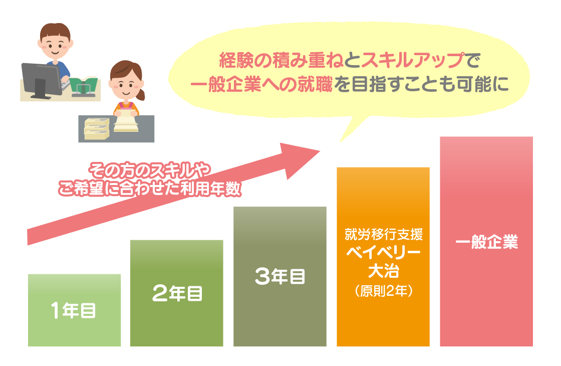 その方のスキルやご希望に合わせて様々な支援でスキルアップをサポートします。